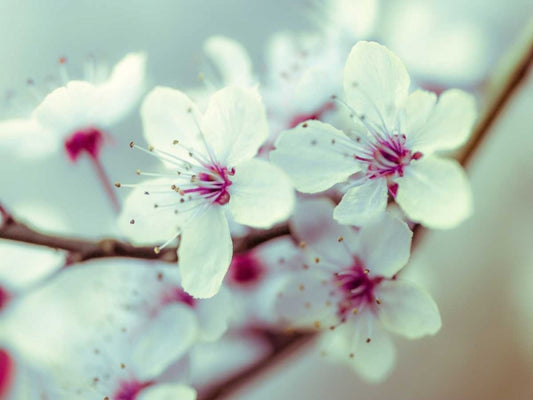 Fresh and beautiful Cheery Blossoms White Modern Wood Framed Art Print with Double Matting by Frank, Assaf