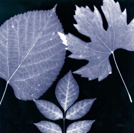 Denim Sunprint Leaves White Modern Wood Framed Art Print with Double Matting by Zamudio, Dan