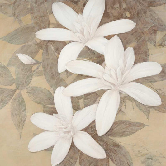 Modern Cream Blossoms White Modern Wood Framed Art Print with Double Matting by Stoyanov, Ivo