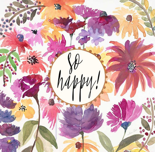 So Happy! White Modern Wood Framed Art Print with Double Matting by Gold, Lora