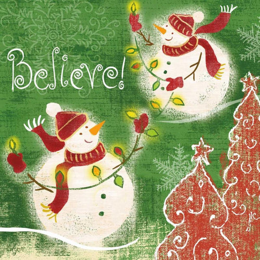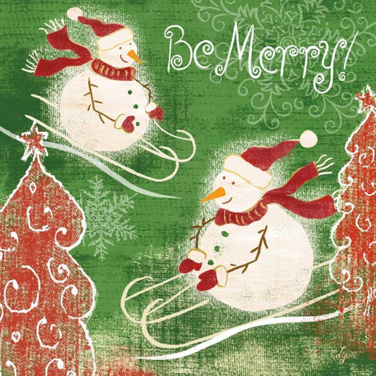 Bright Snowmen I White Modern Wood Framed Art Print with Double Matting by Lyon, Rebecca