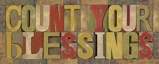 Count Your Blessings Printer Block Panel White Modern Wood Framed Art Print with Double Matting by Reed, Tara