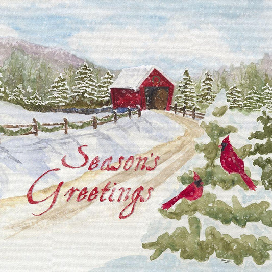 Christmas in the Country II Seasons Greetings White Modern Wood Framed Art Print with Double Matting by Reed, Tara
