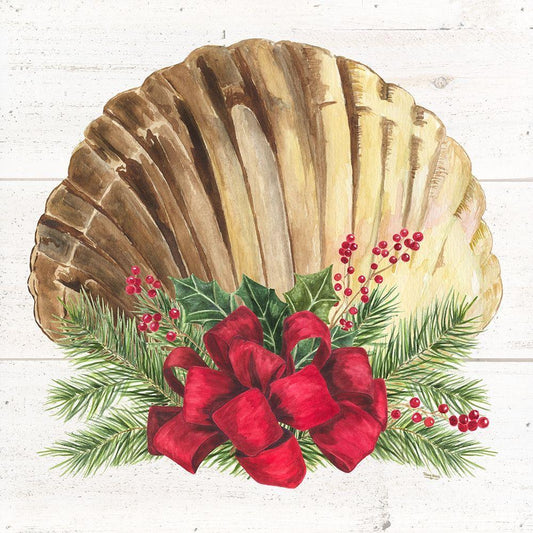 Christmas by the Sea Scallop square White Modern Wood Framed Art Print with Double Matting by Reed, Tara