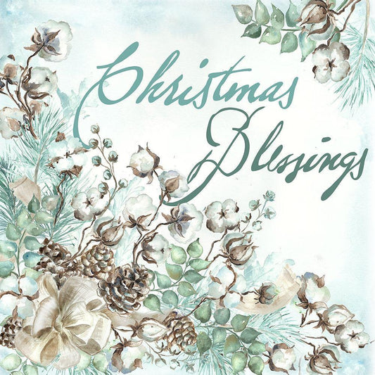 Christmas Blessings Cotton Boll square White Modern Wood Framed Art Print with Double Matting by Tre Sorelle Studios