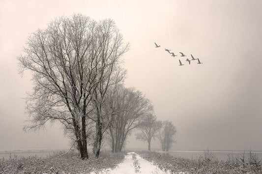 First Touch Of Winter White Modern Wood Framed Art Print with Double Matting by Svoboda Mqep, Peter