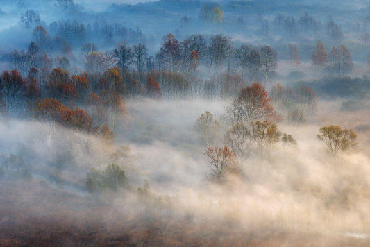 Trees In The Early Morning Fog White Modern Wood Framed Art Print with Double Matting by Alessandro, Valentino