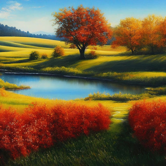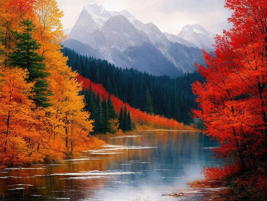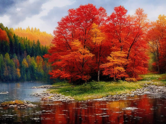 Riverside in Autumn White Modern Wood Framed Art Print with Double Matting by Dundon, Denise