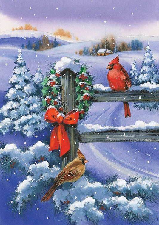 Christmas Cardinal White Modern Wood Framed Art Print with Double Matting by P.S. Art