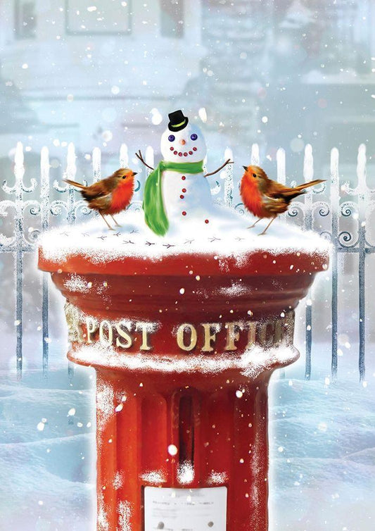 Post Office Snowman White Modern Wood Framed Art Print with Double Matting by P.S. Art