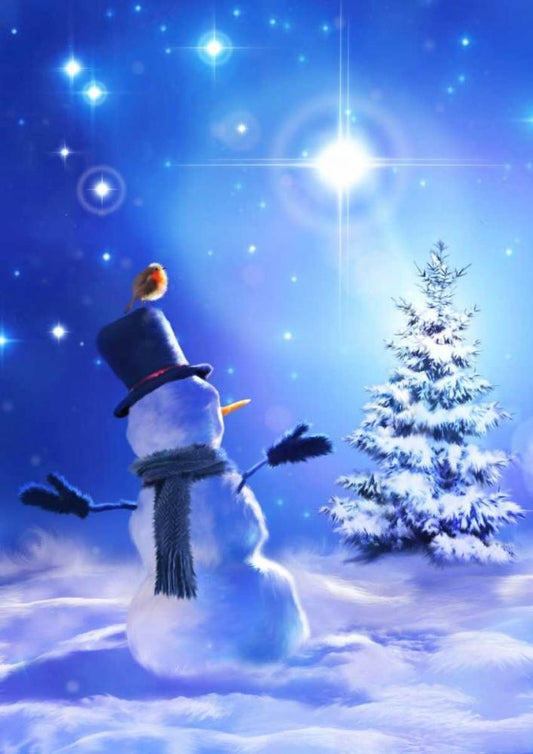 Star Bright Snowman White Modern Wood Framed Art Print with Double Matting by P.S. Art Studios
