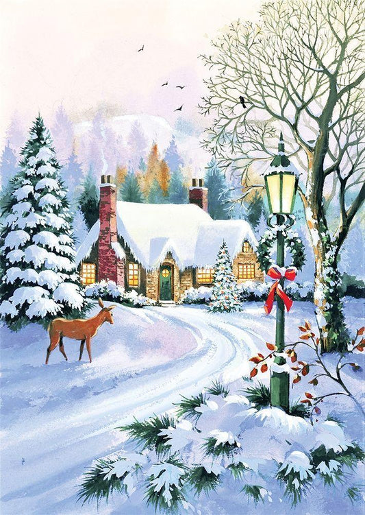 Winter Joy White Modern Wood Framed Art Print with Double Matting by P.S. Art