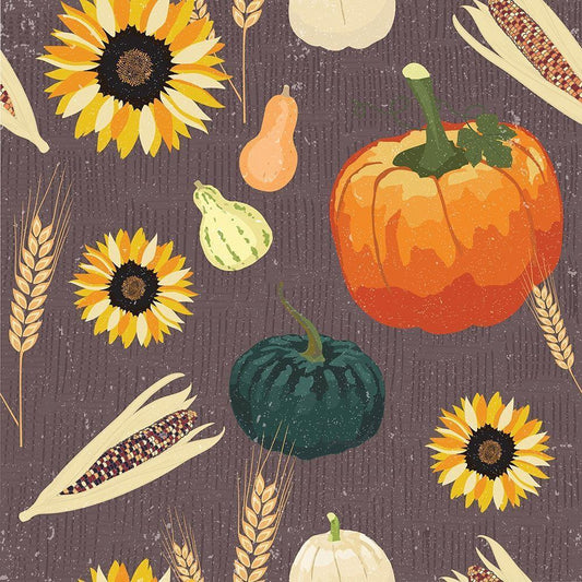 Autumn Harvest Pattern White Modern Wood Framed Art Print with Double Matting by ND Art and Design