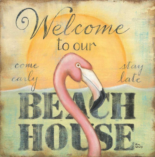 Welcome to Our Beach House White Modern Wood Framed Art Print with Double Matting by Lewis, Kim