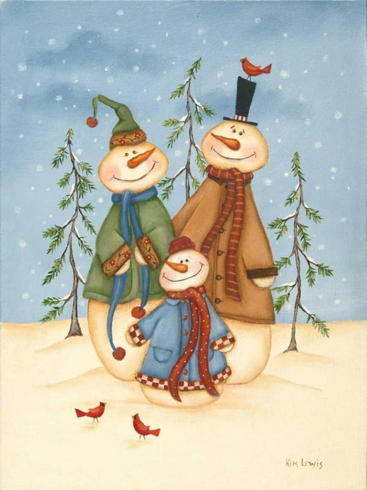 Snowman Family White Modern Wood Framed Art Print with Double Matting by Lewis, Kim