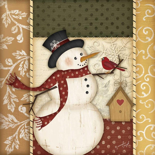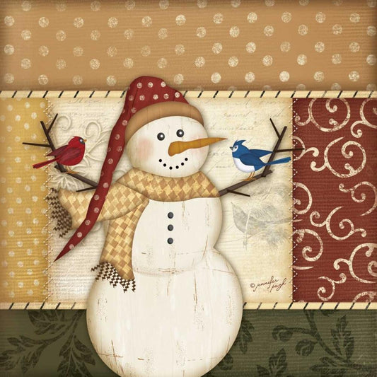 Country Snowman White Modern Wood Framed Art Print with Double Matting by Pugh, Jennifer