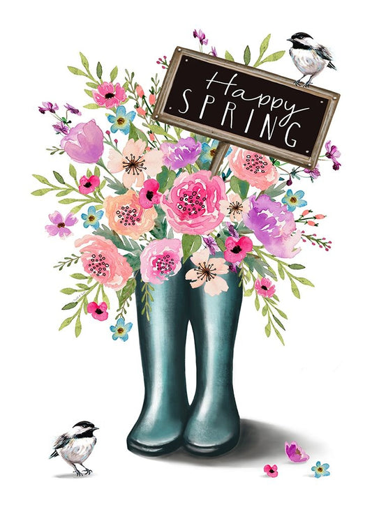Happy Spring White Modern Wood Framed Art Print with Double Matting by Tyndall, Elizabeth