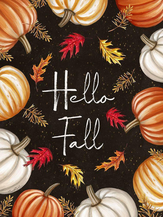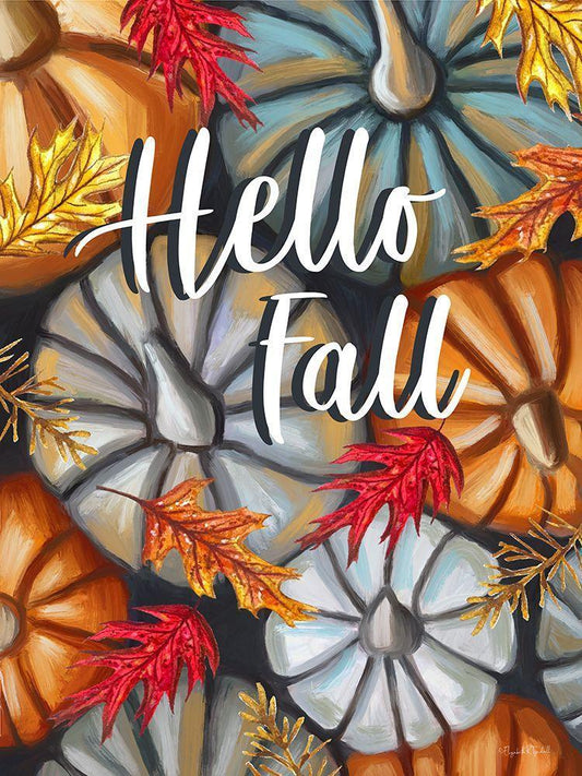 Hello Fall White Modern Wood Framed Art Print with Double Matting by Tyndall, Elizabeth