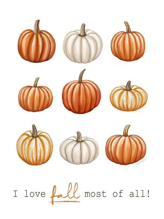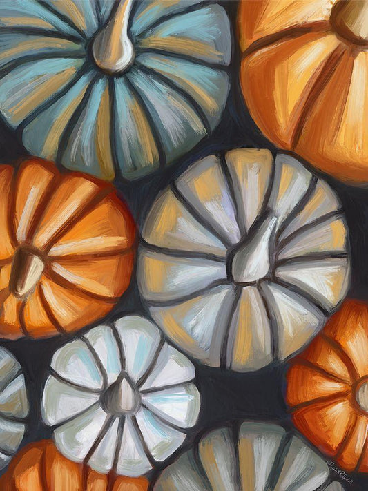 Fall Pumpkins White Modern Wood Framed Art Print with Double Matting by Tyndall, Elizabeth