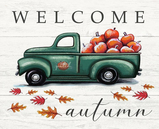 Welcome Autumn White Modern Wood Framed Art Print with Double Matting by Tyndall, Elizabeth