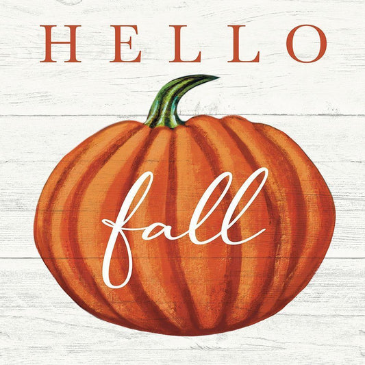 Hello Fall White Modern Wood Framed Art Print with Double Matting by Tyndall, Elizabeth