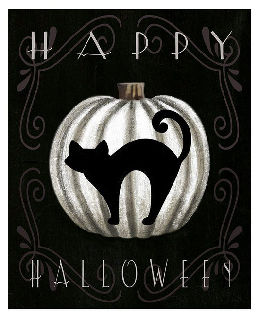 Happy Halloween White Modern Wood Framed Art Print with Double Matting by Tyndall, Elizabeth
