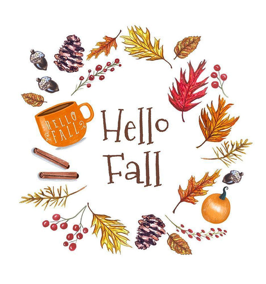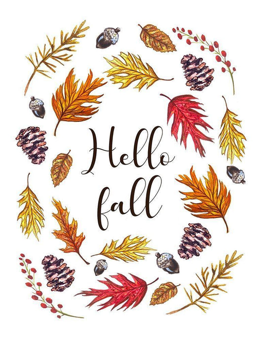 Hello Fall White Modern Wood Framed Art Print with Double Matting by Tyndall, Elizabeth