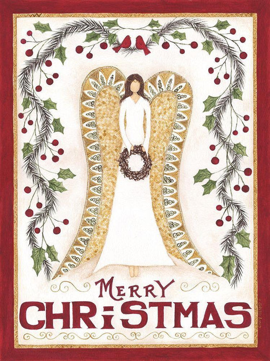 Christmas Angel White Modern Wood Framed Art Print with Double Matting by Shamp, Cindy