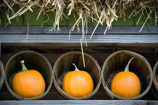 Pumpkins White Modern Wood Framed Art Print with Double Matting by Frates, Dennis