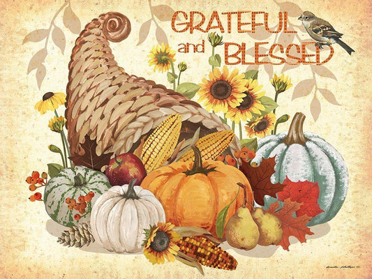 Grateful and Blessed White Modern Wood Framed Art Print with Double Matting by Phillips, Anita