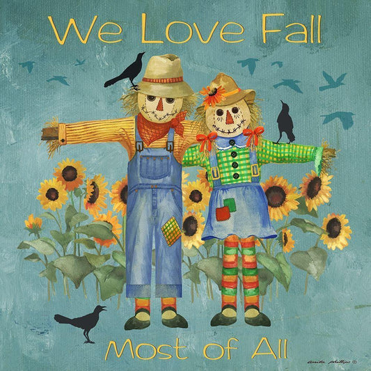 We Love Fall White Modern Wood Framed Art Print with Double Matting by Phillips, Anita