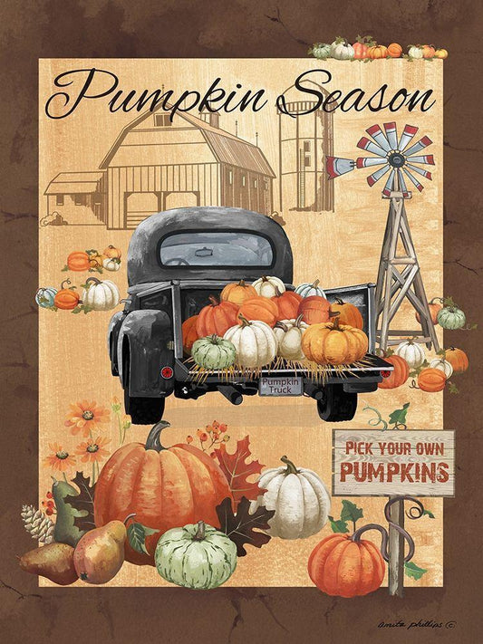 Pumpkin Season White Modern Wood Framed Art Print with Double Matting by Phillips, Anita
