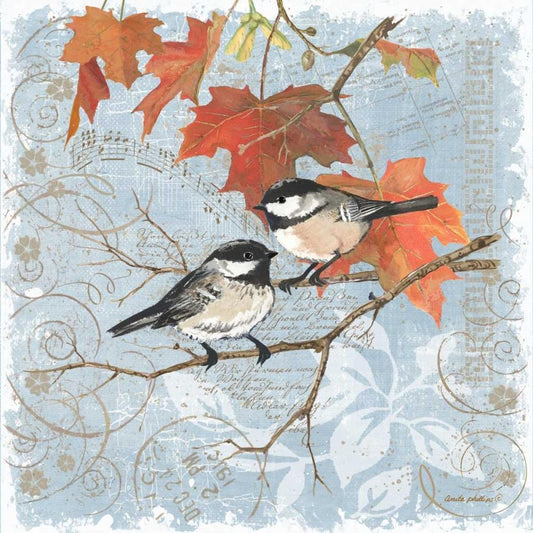 Chickadees III White Modern Wood Framed Art Print with Double Matting by Phillips, Anita
