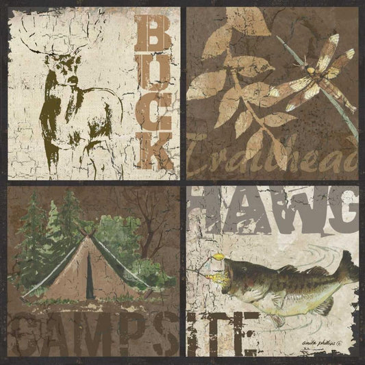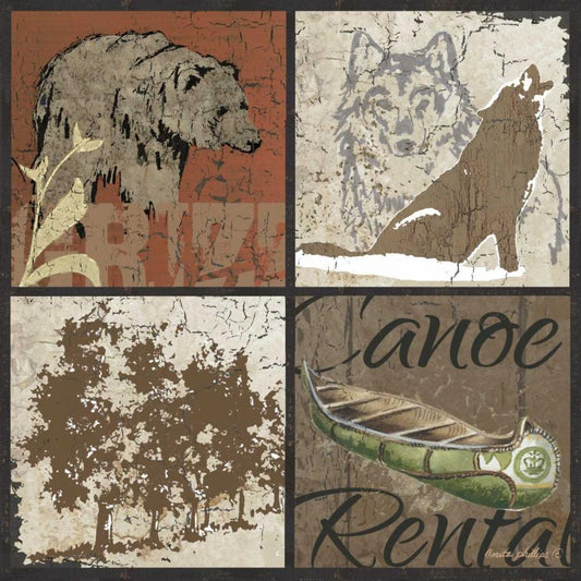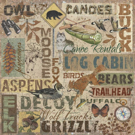 Lodge Collage White Modern Wood Framed Art Print with Double Matting by Phillips, Anita