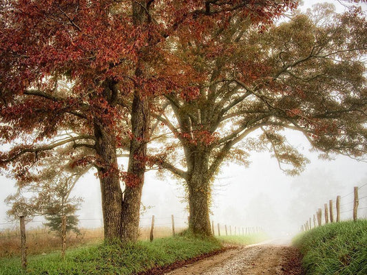 Autumn on a Country Road White Modern Wood Framed Art Print with Double Matting by Head, Danny