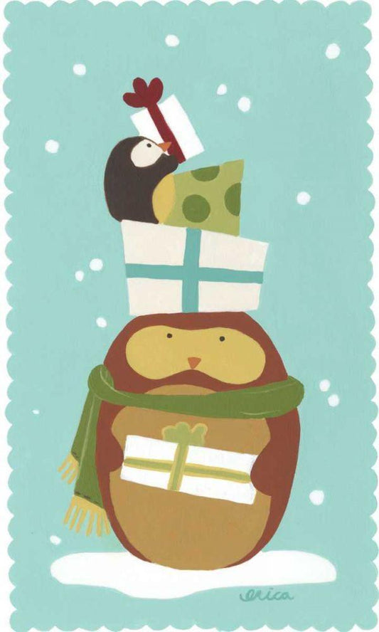 Happy Owlidays IV White Modern Wood Framed Art Print with Double Matting by Vess, June Erica