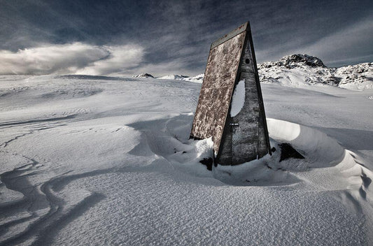 Alone In The Mountains White Modern Wood Framed Art Print with Double Matting by Ingibergsson, Bragi