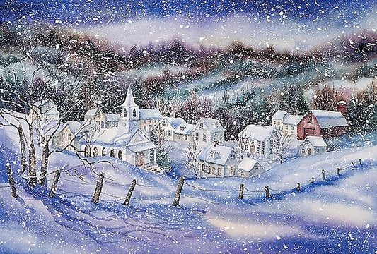 Winter Village White Modern Wood Framed Art Print with Double Matting by McKenna, Kathleen Parr