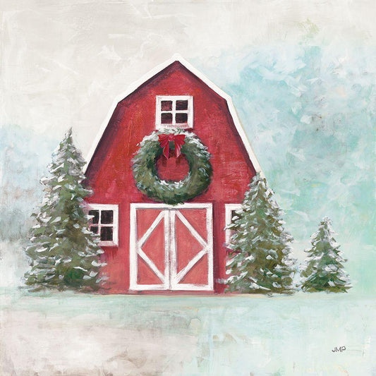 December Barn Blue Sky White Modern Wood Framed Art Print with Double Matting by Purinton, Julia