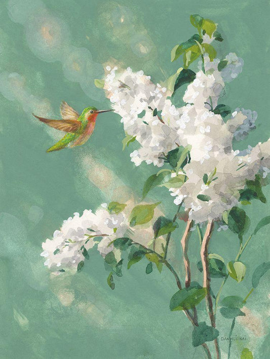 Hummingbird Spring II White Modern Wood Framed Art Print with Double Matting by Nai, Danhui