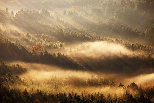 Autumn Rays White Modern Wood Framed Art Print with Double Matting by Rak, Martin