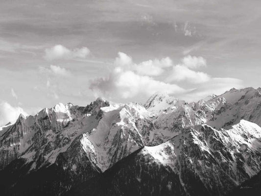 Snowcapped Mountains BW Crop White Modern Wood Framed Art Print with Double Matting by Eichman, Andre