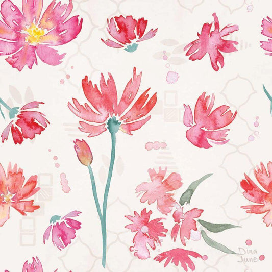 Flowers and Feathers Pattern IVA White Modern Wood Framed Art Print with Double Matting by June, Dina