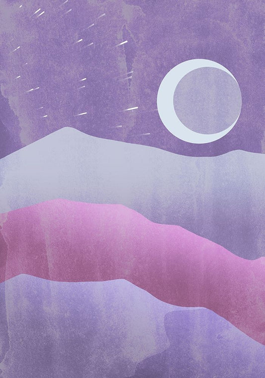 Purple Moon White Modern Wood Framed Art Print with Double Matting by Roze, Fadil