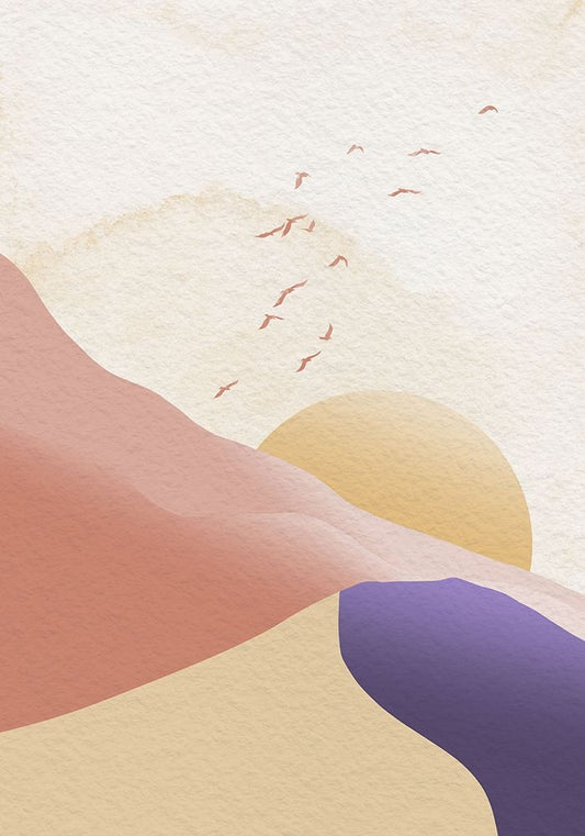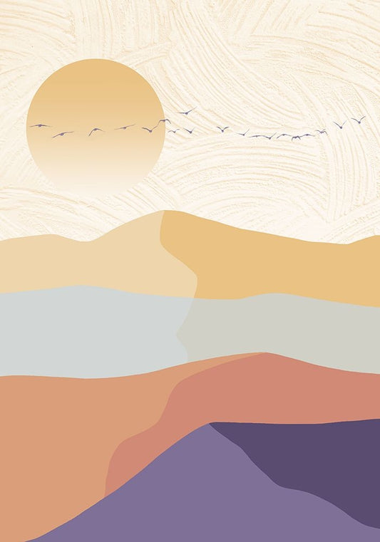 Sunset Mist White Modern Wood Framed Art Print with Double Matting by Roze, Fadil