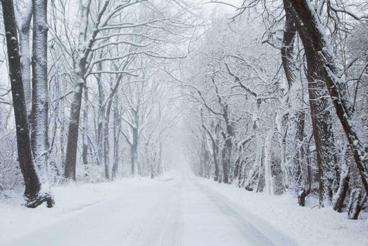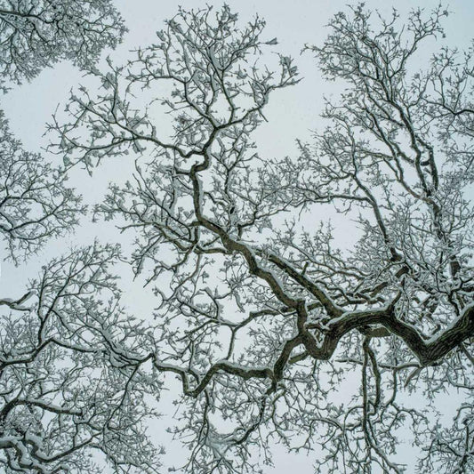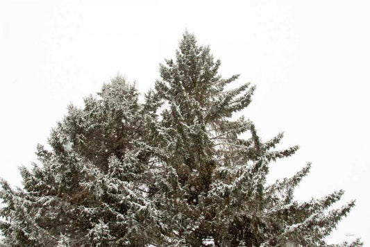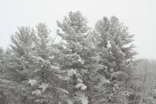 Snow on Treetops White Modern Wood Framed Art Print with Double Matting by Schlabach, Sue
