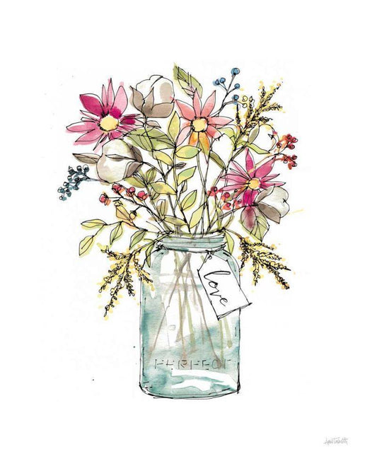 Farmhouse Floral VII White White Modern Wood Framed Art Print with Double Matting by Grove, Beth