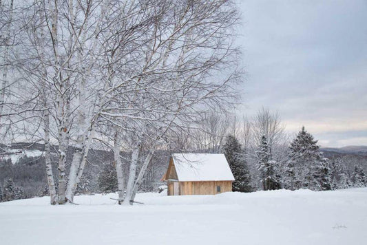 Snowy Day White Modern Wood Framed Art Print with Double Matting by Aledanda