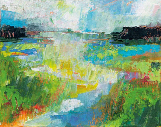 Misty River White Modern Wood Framed Art Print with Double Matting by Vertentes, Jeanette