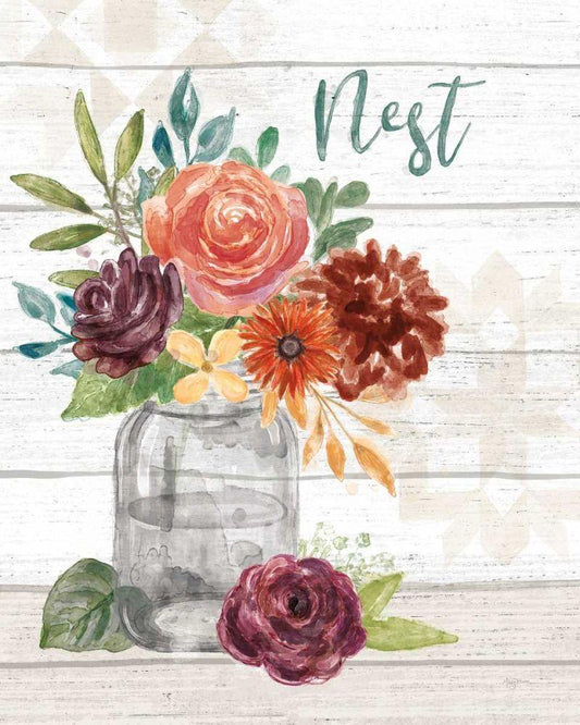 Flower Fest V Green Jar White Modern Wood Framed Art Print with Double Matting by Urban, Mary